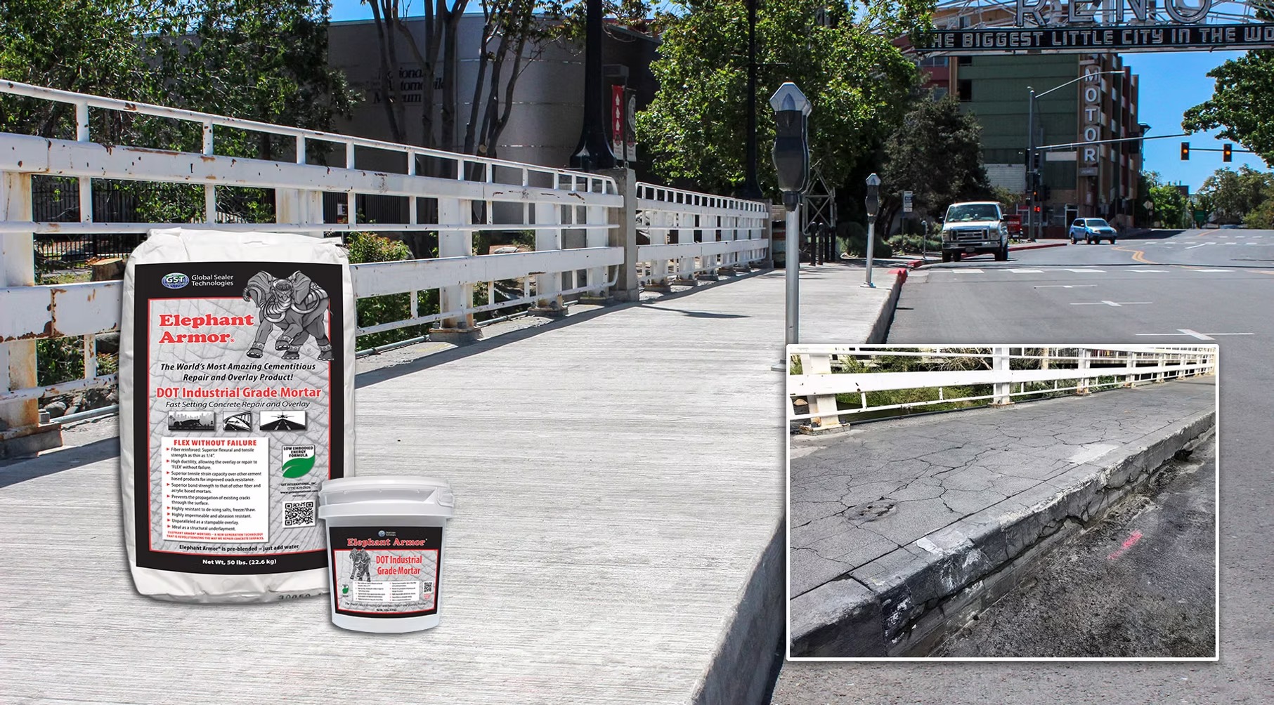 GST Elephant Armor® DOT is a single component, cementitious, fiber reinforced, ultra-fast setting concrete repair and overlay mortar